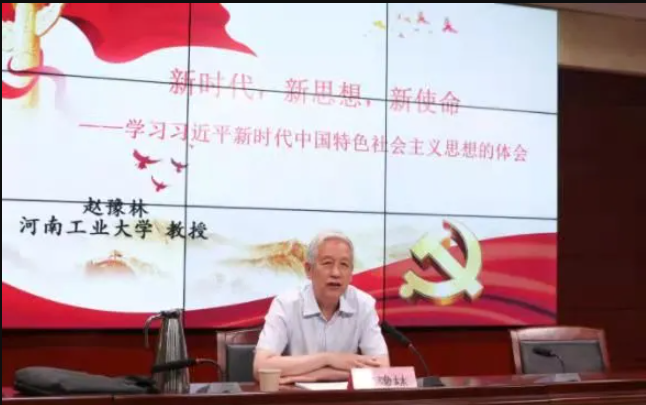 為進(jìn)一步推動我校黨史學(xué)習(xí)教育走深走實(shí),高標(biāo)準(zhǔn)高質(zhì)量完成黨史學(xué)習(xí)教育各項任務(wù),根據(jù)學(xué)校黨史學(xué)習(xí)教育領(lǐng)導(dǎo)小組安排部署,6月23日,河南工業(yè)大學(xué)趙豫林教授受邀到我校作《新時代 新思想 新使命——深入學(xué)習(xí)新時代中國特色社會主義思想的體會》專題報告。學(xué)校領(lǐng)導(dǎo)班子成員,全體中層干部、黨員聆聽了報告。報告會由校黨委書記劉合行主持。