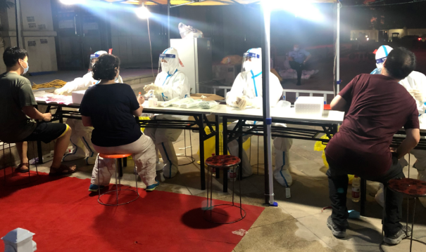 截止到發(fā)稿時間,南校區(qū)所有在校人員正在有序進行第三次核酸檢測。