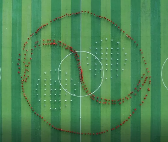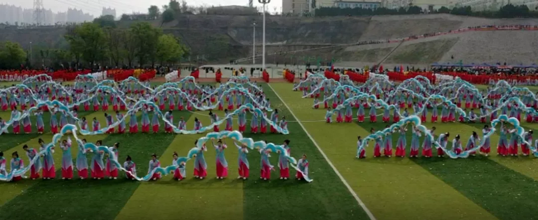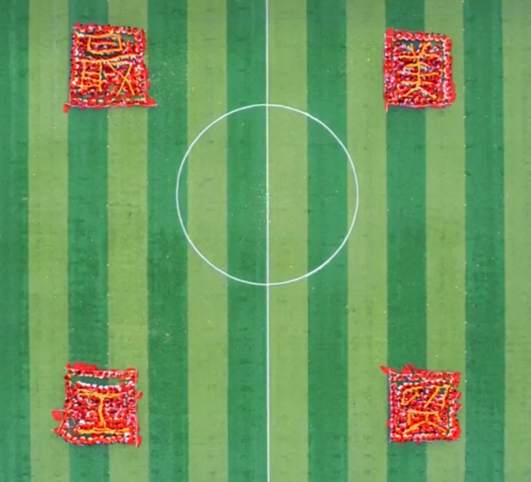 ????最后,盛大的團體操表演開始。分為四個篇章:百年旗幟,燃動青春,英雄少年,盛世中國。?
