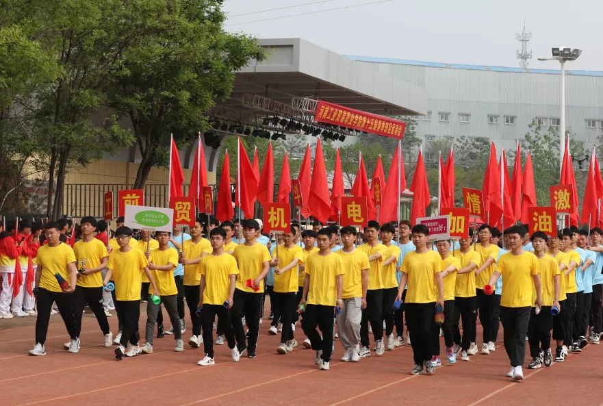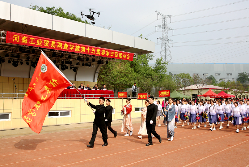 ????開幕式上,國旗護衛隊首先入場,他們身姿昂揚,步伐鏗鏘,表達著對祖國無限的熱愛。緊接著,教職工代表隊和各二級學院代表隊依次入場,他們展示著各代表隊迥然的風采和接續譜寫工貿高質量發展新篇章的信心。高漲的激情,堅定的步伐,宏亮的口號,贏得了滿場的掌聲和歡呼。