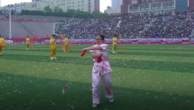 ????武術表演動作剛柔相濟、英姿颯爽、武動青春,展現我中華武術魂。