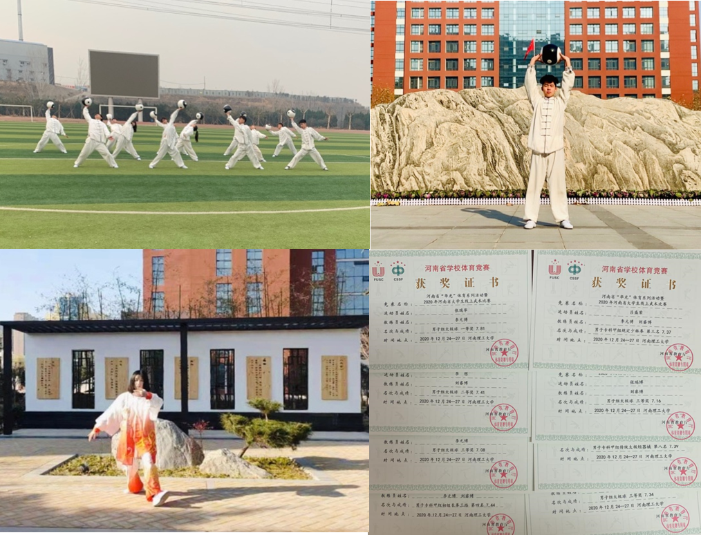 河南省“華光”系列比賽是河南省教育廳每年的常規(guī)性賽事。其中2020年的河南省大學(xué)生線上武術(shù)比賽”共有59所高校代表隊,797名運動員參加,是有記錄以來參加單位和參加人數(shù)最多的一屆。此次比賽中,基礎(chǔ)理論教學(xué)部李元博、劉睿博、張孟斌等教師指導(dǎo)訓(xùn)練的“全省高校男子組太極球”項目中,有1人獲一等獎、1人獲二等獎、4人獲三等獎;同時還取得“男子專科甲組少林拳”第三名、“男子專科甲組初級長拳三路”第四名、“女子專科甲組八法五步”第六名、“男子專科甲組傳統(tǒng)太極短器械”第八名等十余項佳績。