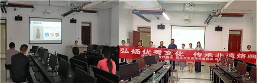(2)加大智力扶貧力度,培訓(xùn)烙畫工藝師。8月25日,藝術(shù)設(shè)計系周建仁書記和其他老師,再次來到寧陵葫蘆基地進(jìn)行調(diào)研與考察,與烙畫傳承人三商合作社翟志偉社長溝通與交流。9月14—16日,學(xué)院培訓(xùn)畫師提升理論知識和宣講水平,并開展非遺進(jìn)校園活動。翟社長帶領(lǐng)4名畫師進(jìn)校園,進(jìn)行交流學(xué)習(xí)培訓(xùn)。藝術(shù)設(shè)計系王芮、侯蕾和左花蘋3位老師,圍繞民間工藝發(fā)展史、課堂教學(xué)組織與安排、素描色彩基礎(chǔ)知識三大主題給畫師們進(jìn)行了深入的培訓(xùn),課堂上大家各抒己見、積極探討,充分交流烙畫工藝與傳統(tǒng)美術(shù)知識,為非遺文化走進(jìn)校園打下良好基礎(chǔ)。