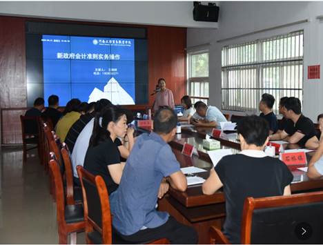 2.財會培訓(xùn)。8月21-23日,我院財務(wù)會計系王曉輝和程金鳳2位老師為寧陵縣財政局下屬15個鄉(xiāng)鎮(zhèn)的財務(wù)人員進(jìn)行了財務(wù)培訓(xùn)。主題分別為“新政府會計準(zhǔn)則實(shí)務(wù)操作”和 “行政事業(yè)單位會計基礎(chǔ)工作規(guī)范”。財務(wù)會計系老師的專業(yè)水平和職業(yè)素養(yǎng)受到了扶貧辦領(lǐng)導(dǎo)和財務(wù)人員的一致好評。