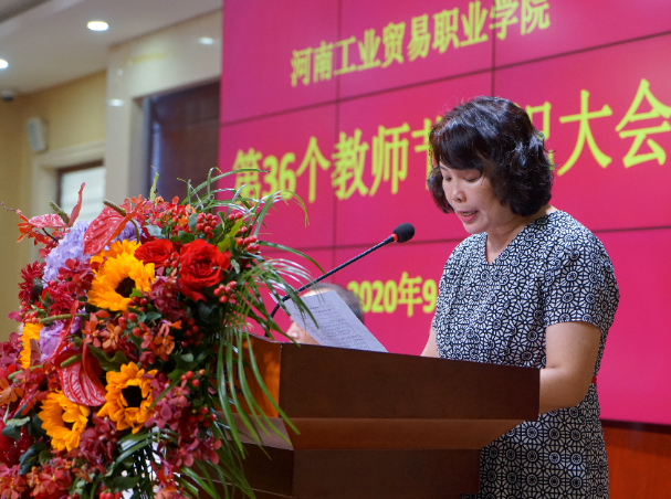 在第36個教師節到來前夕,河南工業貿易職業學院在龍湖校區隆重舉行慶祝大會,深入學習貫徹習近平總書記對第三十六個教師節的寄語精神,表彰優秀教師和先進教育工作者,營造尊師重教強師興校氛圍,激勵廣大教師和教育工作者不忘立德樹人初心,牢記為黨育人、為國育才使命,不斷作出新的更大貢獻。