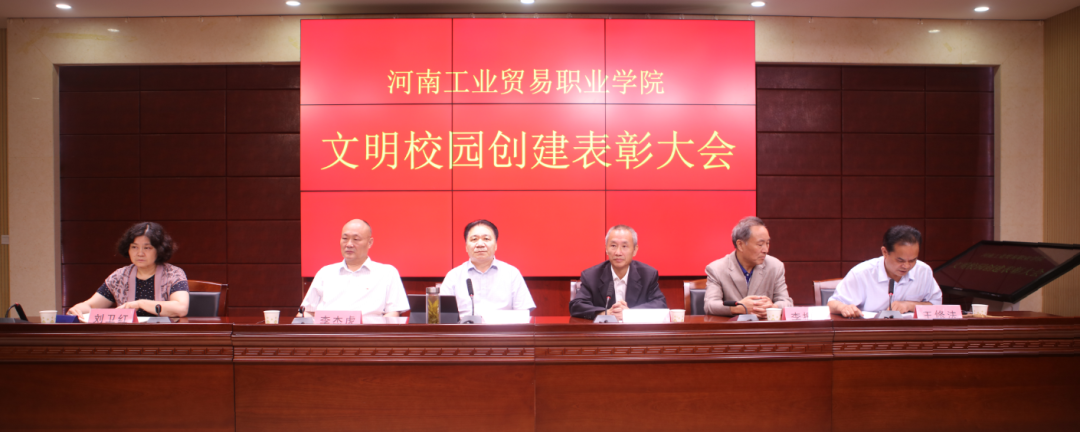 王修法宣讀了《中共河南工業貿易職業學院委員會關于表彰2019年度創建省級文明校園先進個人的通報》。《通報》指出,2019年,我院被省委、省政府授予“河南省文明校園”稱號,成績的取得,是全院上下凝心聚力,攻堅克難,團結協作的結果。各單位和全院師生要以先進典型為榜樣,鞏固擴大文明校園創建成果,實現學院的全面發展、快速發展,為譜寫新時代中原更加出彩的絢麗篇章作出新的更大貢獻。