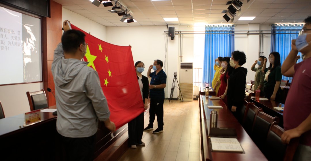 5月14日下午,培訓結束后,學院為新進教師在招聘一樓會議室舉行入崗宣誓儀式。在宣誓儀式上,黨委組織部(統戰部)部長兼人力資源處處長李明前做了講話,首先熱烈歡迎新進教師的加入,并對他們提出了3點期望:不斷增強責任感和使命感,不斷升華為人師表的內涵和價值,不斷提高教書育人的能力和藝術。接著,在教學管理處處長李強的帶領下,大家面向國旗,肅然而立,舉起右手,莊嚴宣誓,我宣誓:“我志愿做一名光榮的人民教師……嚴謹治學,啟智求真;為人師表,樂于奉獻…”