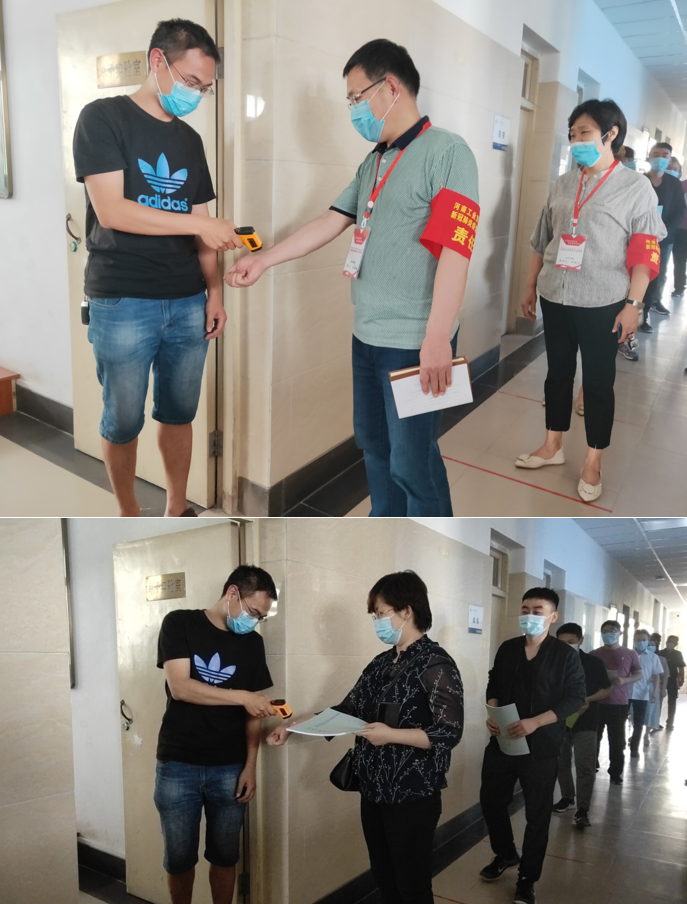 五、學生上課演練進門:教學樓或實訓場地大門兩側設置檢測通道,每個通道上都貼地貼,要求前后距離保持一米,在老師的有序引導下,每一個學生都要查看健康碼,上交健康卡,填寫健康狀況登記表,測量體溫,體溫正常確認信息后才能進入教室。如果發現體溫異常,老師會將學生帶至臨時隔離點,進一步測量體溫,一旦確認學生發熱,立即與定點醫院聯系就診。