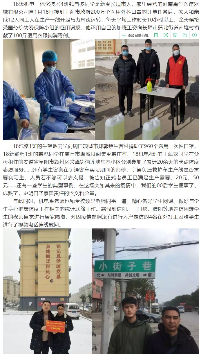 齊心協力抗疫情,河南工業貿易職業學院師生在行動