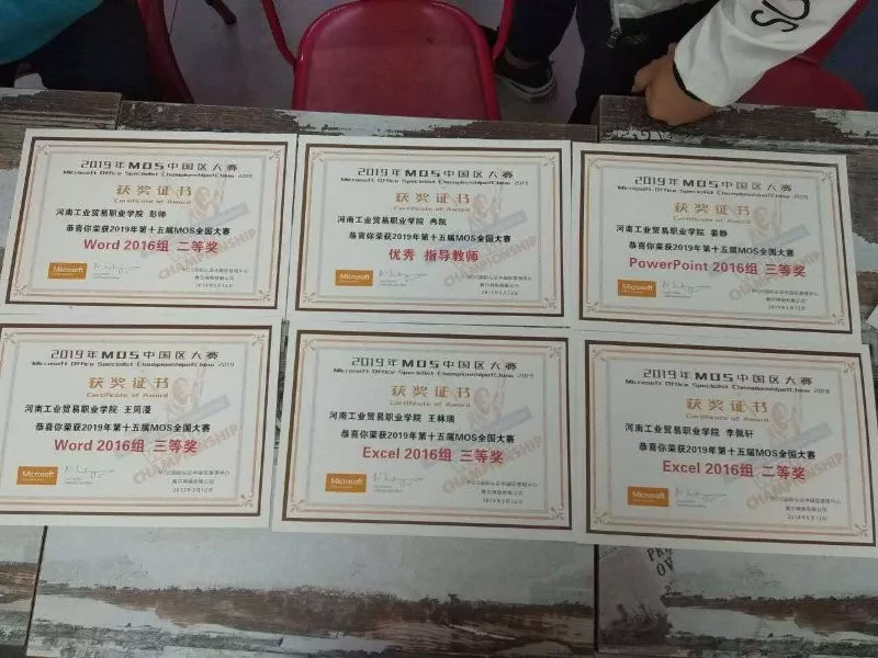 ????2019年5月9日-12日微軟MOSa大賽中國區總決賽在微軟亞洲研究院舉辦,本次賽事是由微軟中國主辦。本次比賽參賽學校近百所,參賽選手200余人,涵蓋985,211,本科院校,大專院校等。經過3天激烈競爭,最終我院李佩軒、彭帥兩位同學榮獲國賽二等獎,姜靜、王林瑞、王同漫三位同學榮獲國賽三等獎!成為本次微軟MOS中國區總決賽大專院校前三甲,取得我校參與此項賽事的歷史性突破!以上各位同學來自全院各專業,他們為學校爭光,提高了學院在中國以及河南高校的認可度和影響力。