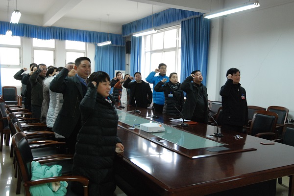 2017年12月28日上午,學院黨委辦公室(學院辦公室、紀委辦公室、監察室)黨支部與黨委組織部(統戰部、人力資源處)黨支部在學院二樓大會議室舉行了莊嚴的重溫入黨誓詞活動,活動由黨委組織部部長李明前主持,黨委辦公室主任李春陽領讀誓詞,劉煒副院長以一名普通黨員的身份參加了此次活動。