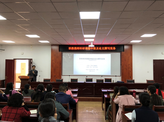 10月16日下午三點,在學院辦公樓一樓大報告廳,教學管理處、科學研究處共同舉辦了職教教師科研課題申報及論文撰寫實務學術講座。