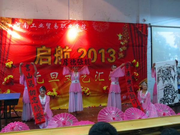 載歌載舞歡度佳節(jié),同心同德再創(chuàng)輝煌。為了慶祝中共十八大的勝利召開,經(jīng)過兩個月的辛苦排練,12月25日下午2點30分,院團委“啟航2013”元旦文藝匯演在我院一樓報告廳成功舉辦。院團委全體老師與各系學生共同聯(lián)歡。此次文藝匯演是院團委認真學習踐行黨的十八大精神的一次重要活動。活動不僅增強了學校的藝術氛圍,還展示了校園的第二課堂成果,為創(chuàng)建幸福和諧工貿(mào),推進學生綜合素質(zhì)的提升吹響了號角。