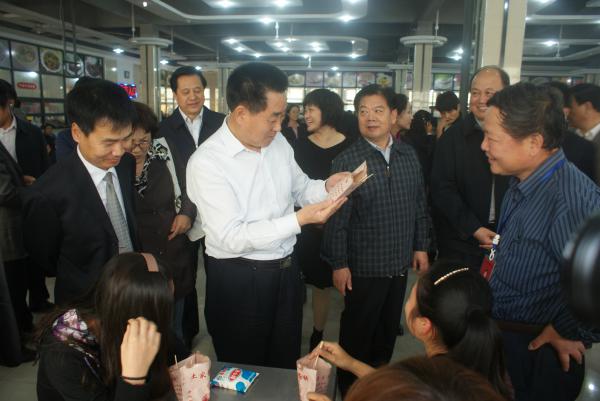 在整個(gè)調(diào)研過程中,劉副省長(zhǎng)對(duì)學(xué)院建設(shè)的三方面問題表示高度關(guān)注。一是糧食專業(yè)的建設(shè)。他指示,河南工業(yè)貿(mào)易職業(yè)學(xué)院糧食類專業(yè)的基礎(chǔ)條件比較好,設(shè)備儀器也比較完備,有不少處于國(guó)內(nèi)先進(jìn)水平,特別是能夠?qū)Z油轉(zhuǎn)基因成分進(jìn)行測(cè)定的熒光定量PCR等先進(jìn)儀器設(shè)備,應(yīng)該充分利用,開展科學(xué)研究,更好地服務(wù)社會(huì)。在烘焙蒸煮實(shí)訓(xùn)室,劉副省長(zhǎng)和隨行人員很有興趣地品嘗了學(xué)生制作的面包、饅頭,指示學(xué)院要加大校企合作力度,進(jìn)行“校中廠”等模式的探索,為主食產(chǎn)業(yè)化培養(yǎng)更多的高技能人才。二是學(xué)生學(xué)習(xí)生活狀況。在與學(xué)生的交流過程中,劉副省長(zhǎng)認(rèn)真詢問了學(xué)生對(duì)所學(xué)專業(yè)的興趣度及對(duì)校園生活的滿意度。當(dāng)了解到學(xué)生一天花費(fèi)不到15元就能吃飽吃好時(shí),他對(duì)此表示欣慰。三是學(xué)生就業(yè)工作。劉副省長(zhǎng)向多位老師詢問學(xué)生就業(yè)去向,就業(yè)形式。了解到糧食專業(yè)類學(xué)生自主創(chuàng)業(yè)成功的案例后,他指示學(xué)院領(lǐng)導(dǎo)要抓好這一類典型,把這些創(chuàng)業(yè)成功者請(qǐng)回來(lái),向在校生傳授經(jīng)驗(yàn)。