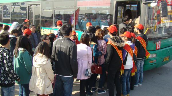 志愿者們佩戴小紅帽和綬帶,排著整齊的隊(duì)伍,分別在校園周邊十字路口、公交站點(diǎn)等交通要道,對(duì)橫穿馬路、隨地吐痰、亂堆垃圾、闖紅燈、不排隊(duì)乘車等不文明行為進(jìn)行勸阻活動(dòng)。志愿者們認(rèn)真負(fù)責(zé)的態(tài)度贏得了路人的稱贊。盡管當(dāng)天風(fēng)起塵揚(yáng),仍不減人們參加拜祖大典的積極性,19路公交站處人山人海,志愿者忙碌的背影,在擁擠的人群里格外顯眼。許多乘客和路人紛紛豎起大拇指,公交司機(jī)更是對(duì)志愿者們的愛(ài)心和奉獻(xiàn)嘖嘖稱贊。