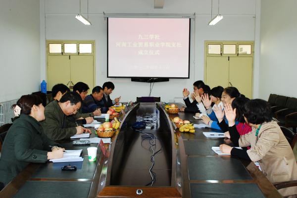 4月13日上午,九三學社河南工業貿易職業學院支社成立大會在學院辦公樓會議室召開。九三學社河南省委組織處處長王治華、組織處辦公室主任苗紅娣,九三學社河南省農大委員會主委文才藝,九三學社河南省農大委員會秘書長王紅衛,學院黨委書記孫柏梁,副院長劉煒,九三學社河南工業貿易職業學院全體社員參加了會議。會議由九三學社河南省農大委員會秘書長王紅衛主持。