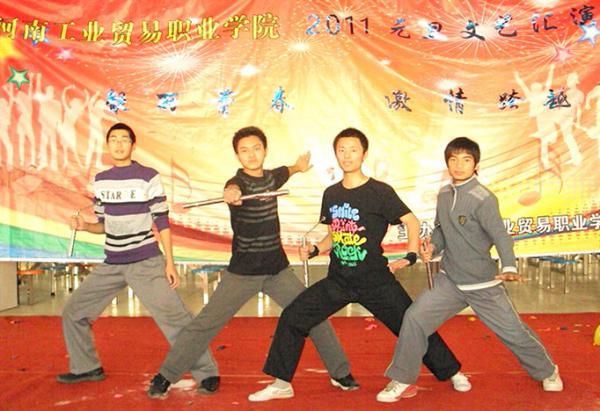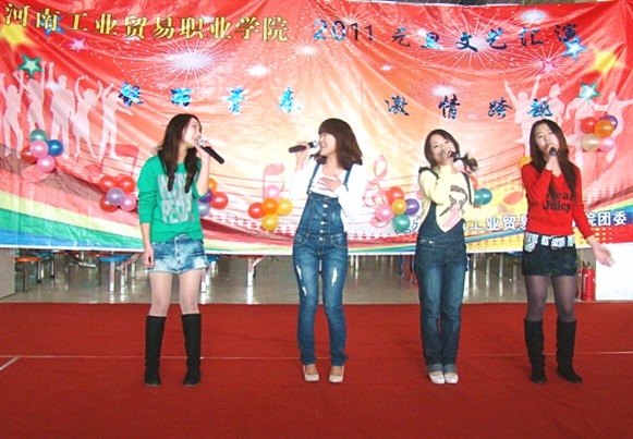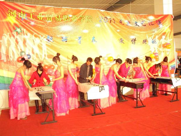 2010年,我院迎來(lái)六十華誕,六秩工貿(mào)譜寫(xiě)新章,實(shí)現(xiàn)了跨越式發(fā)展。飽含著盛世濃情的2011年元旦文藝匯演由院團(tuán)委傾情奉獻(xiàn),節(jié)目形式多樣、內(nèi)容豐富,包括搖滾樂(lè)、街舞、男女對(duì)唱、小品、書(shū)法、走秀等種藝術(shù)表現(xiàn)形式,展現(xiàn)了我院大學(xué)生如驕陽(yáng)般熱情似火的青春風(fēng)采。