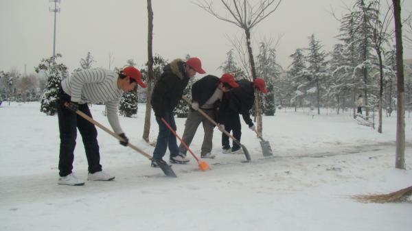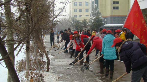 3月1日清晨7點,院團委及青年志愿者的干部們和機電系勤工助學的同學們90余人,弘揚“奉獻、友愛、互助、進步”的志愿精神,紛紛拿起鐵鍬、掃帚,大家分成幾組,分別奔赴教學樓、辦公樓、實訓樓、學生宿舍樓、餐廳等校園各主干道上鏟除校園內的積雪,為方便全院師生的出行,同學們發(fā)揚不怕苦、不怕累的奉獻精神,苦苦奮戰(zhàn)了三小時,為廣大師生們營造了一個整潔的校園環(huán)境。