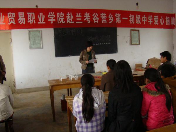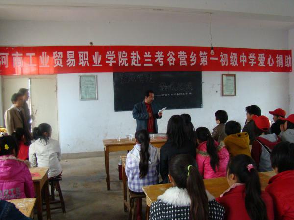 為盡快將捐贈的衣服送出,4月21日,雖然天將雨水,卻不能阻擋我們前去捐送的腳步。早上8點半,院團委老師和經貿系寧光立老師帶領青年志愿者學生一行11人,將衣物打包裝車,趕赴蘭考谷營鄉第一初級中學。上午11點,捐助儀式正式開始。谷營中學黃偉副校長、全體教師和各班貧困學生代表參加了捐助儀式。儀式上,黃偉副校長首先對我們的到來表示熱烈的,他說:非常感謝河南工業貿易職業學院師生門的愛心捐助,這是他們學校收到的最大一批捐助,黃校長還激勵孩子們以樂觀向上的生活態度,積極克服眼前困難,將愛的接力棒傳遞下去。隨后,院團委范老師作了發言,鼓勵受捐助學生自強不息,珍惜學習機會,發奮讀書,以優異的成績回報社會。最后為貧困學生發放了衣服,件件衣服不僅溫暖了孩子們的身體,更溫暖了孩子們的心靈。