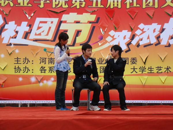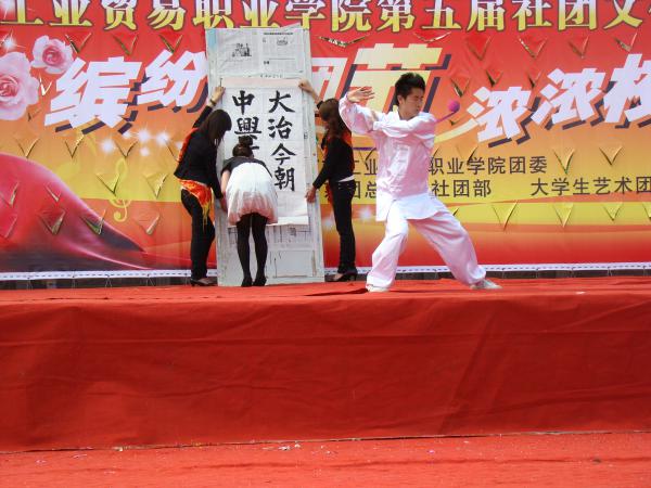 主持人宣布開幕式開始后,各個社團的節(jié)目精彩亮相。詩朗誦《在一起》表達了同學(xué)們身在校園,情系玉樹之情。街舞《成人禮》、《poker face》令現(xiàn)場觀眾耳目一新,連連叫絕。歌曲《少林,少林》表現(xiàn)了我院學(xué)生對中原文化的憧憬和贊嘆。相聲《吹牛》,小品《吉祥三寶》演的聲情并茂,引得臺下陣陣笑聲。時裝秀更是贏得陣陣掌聲。整場演出舞蹈、歌曲、相聲、朗誦引人入勝,魔術(shù)、太極、樂隊表演技驚四座。精彩紛呈的文藝演出體現(xiàn)了我院社團活動的豐富多彩,展示了我院大學(xué)生的多才多藝。伴隨著社團文化藝術(shù)節(jié)的開幕,校園書法大賽、小品大賽、演講比賽、征文比賽等一系列的社團活動已陸續(xù)展開,我院師生將度過一個豐富多彩的繽紛五月。