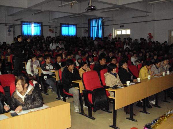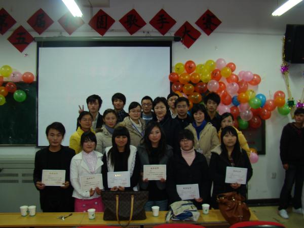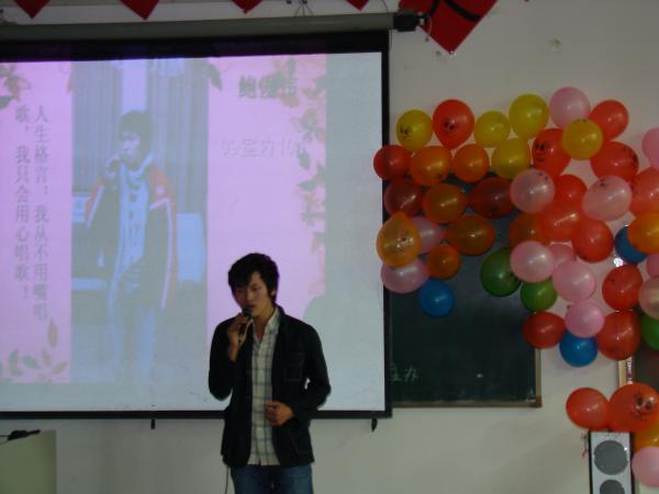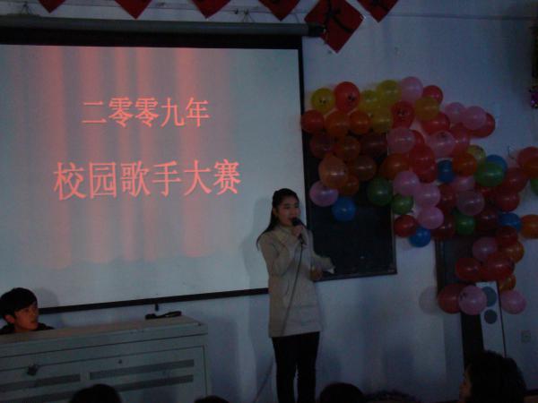 為活躍校園文藝活動,豐富大學生課余文化生活,今年11月由院團委主辦,院團委文藝部和大學生藝術團承辦的河南工業貿易職業學院第五屆“校園歌手大賽”盛大開幕。本次比賽共有150名選手參加,20余位同學進入復賽,經過了兩個星期的比拼角逐,最終有11名同學成功進入總決賽。 11月17日下午2:00,校園歌手大賽總決賽在院辦公樓階梯教室拉開帷幕。第一位比賽選手周焰濤同學以一首體現青年朝氣活力的《少年游》,點燃了全場觀眾的熱情;王立艷以清脆干凈的嗓音,吟唱出傳神的《夢里花》,讓觀眾們陶醉;王文博同學以其獨特的嗓音演唱的《那一天》將本次比賽推向高潮;馮萌同學以其獨有的綜合實力,出色的演唱出《一個像夏天,一個像秋天》奪得了本次比賽的第一名。選手們動情的演唱,精彩的表演讓觀眾有著耳目一新的感受,博得了全場觀眾的陣陣掌聲和歡呼聲,讓人為之沸騰。