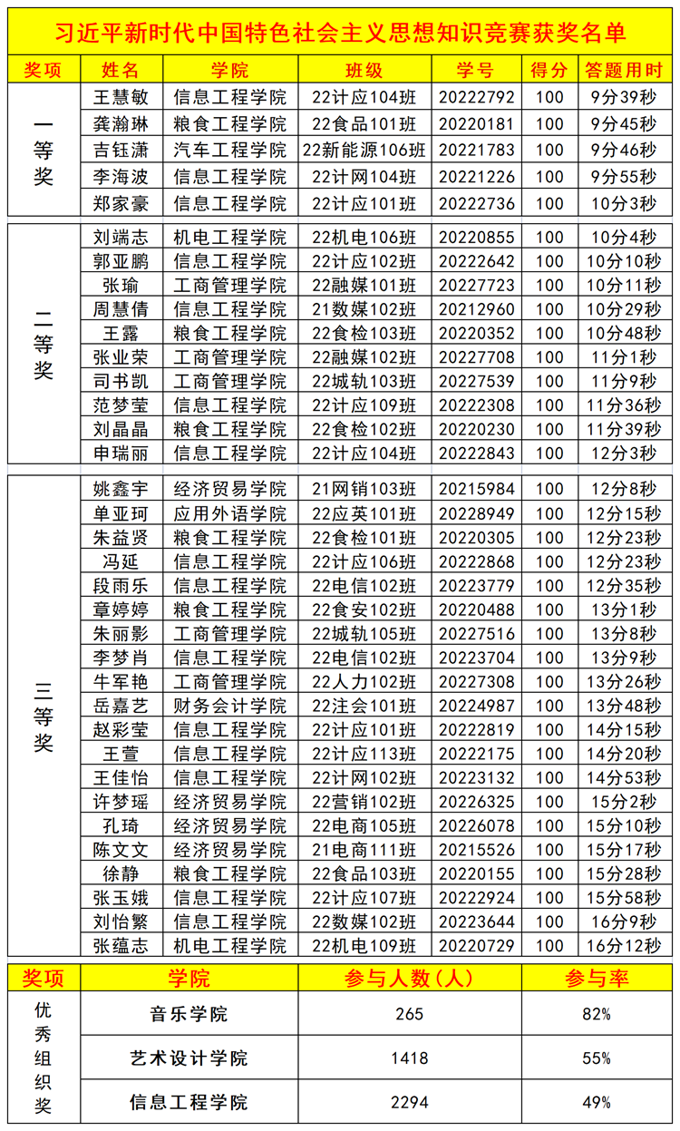 知識競賽題型分為單項選擇題、多項選擇題、判斷題等,總分值100分。參賽同學通過掃描二維碼方式,進入答題。每次掃碼,系統會從題庫中隨機抽取題目組卷。最終根據答題成績和時間,綜合排序評出一等獎5名,二等獎10名,三等獎20名,及優秀組織獎三個學院。