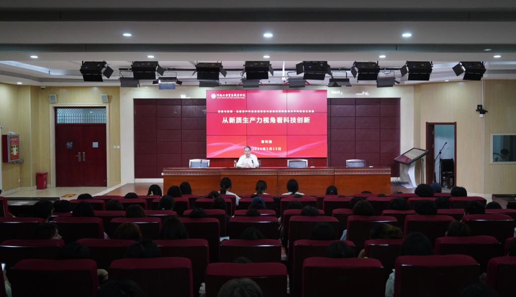 5月13日,校長曹利強走進思政課堂,圍繞“從新質生產力視角看科技創新”主題,為經濟貿易學院、藝術設計學院200余名學生講授了一堂精彩的思政課。