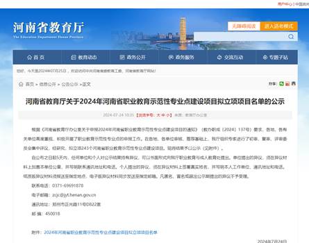 7月24日,河南省教育廳辦公室發(fā)布了《河南省教育廳關(guān)于2024年河南省職業(yè)教育示范性專業(yè)點(diǎn)建設(shè)項(xiàng)目擬立項(xiàng)項(xiàng)目名單的公示》文件,我校兩個(gè)專業(yè)成功入圍,其中工業(yè)機(jī)器人專業(yè)擬為示范性傳統(tǒng)優(yōu)勢專業(yè)點(diǎn)、新能源汽車技術(shù)擬為示范性新興專業(yè)點(diǎn)。