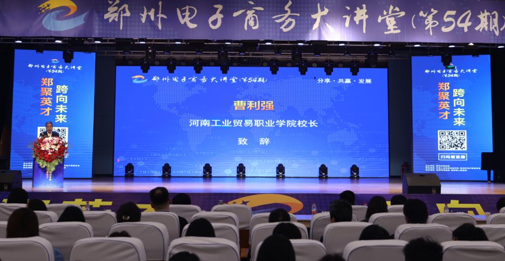 為加快電子商務行業發展、服務地方經濟,助力人才輸出。10月31日下午,由鄭州市商務局主辦,我校與鄭州市電子商務協會聯合承辦,新鄭市商務局、龍湖鎮人民政府協辦的第54期鄭州電子商務大講堂在我校龍湖校區學術報告廳成功舉辦。本次大講堂以“鄭聚英才 跨向未來”為主題。河南工業貿易職業學院黨委副書記、校長曹利強和鄭州市電子商務協會秘書長趙亮出席大講堂并致辭,鄭州市商務局電子商務處處長郭家棟,新鄭市龍湖鎮政府黨委委員、副鎮長王俊艷,鄭州市電子商務協會會長李海濤出席大講堂。大講堂由副校長劉衛紅主持。