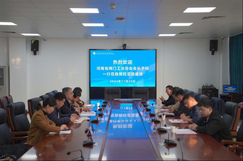 校長曹利強對于田會長一行表示熱烈歡迎,詳細介紹了學校的基本情況和發(fā)展規(guī)劃。他表示,希望通過與河南省閥門工業(yè)協(xié)會的強強聯(lián)合,能夠實現(xiàn)資源共享,優(yōu)勢互補,共同打造一個有利于學生成長、企業(yè)發(fā)展的良好平臺。雙方將在人才培養(yǎng)、實踐教學、科研創(chuàng)新、就業(yè)創(chuàng)業(yè)等多方面深度協(xié)作。