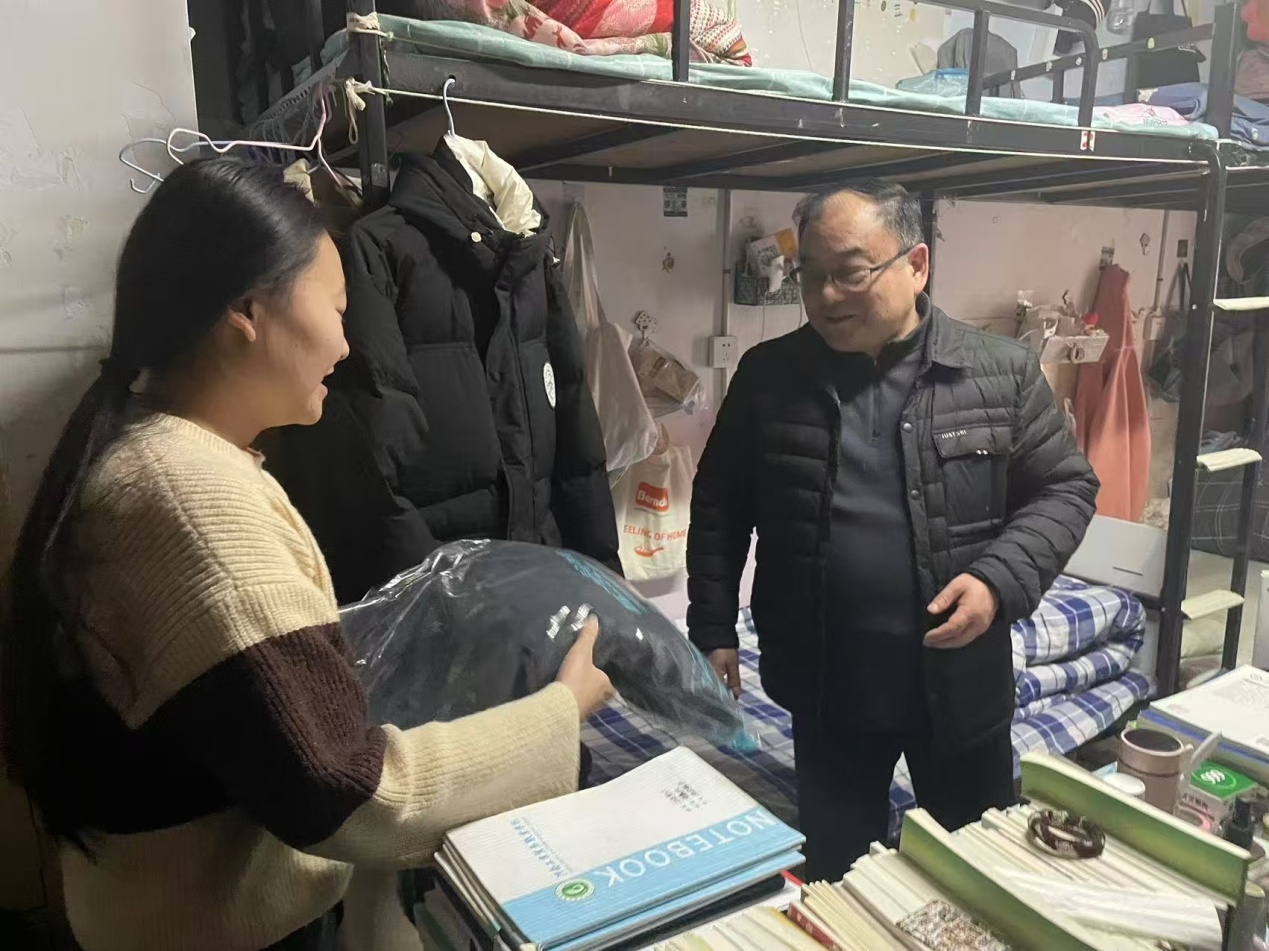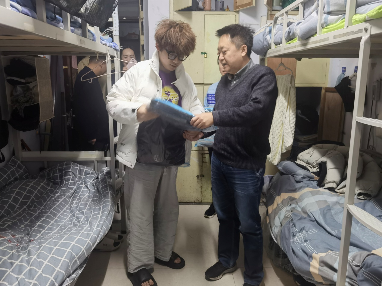 12月3日-6日,我校黨委書記李國(guó)鋒,黨委副書記、校長(zhǎng)曹利強(qiáng)及其他全體校領(lǐng)導(dǎo)深入學(xué)生宿舍,為家庭經(jīng)濟(jì)困難學(xué)生送上過(guò)冬棉衣,傳遞工貿(mào)溫暖。
