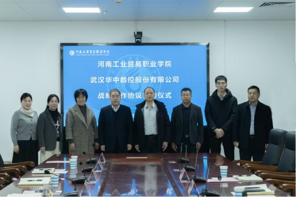 武漢華中數(shù)控股份有限公司相關(guān)企業(yè)負責人,校企合作與國際交流處、機電工程學院相關(guān)人員參加簽約儀式。