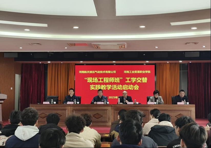3月10日,由河南工業(yè)貿(mào)易職業(yè)學(xué)院與河南航天液壓氣動技術(shù)有限公司聯(lián)合舉辦的“現(xiàn)場工程師班”工學(xué)交替實(shí)踐教學(xué)活動啟動會暨現(xiàn)場工程師實(shí)踐基地揭牌儀式在河南航天液壓氣動技術(shù)有限公司隆重舉行。學(xué)校黨委書記李國鋒、副校長周艷麗,河南航天液壓氣動技術(shù)有限公司黨委書記李濤、副總經(jīng)理付靜出席本次活動。儀式由河南航天液壓氣動技術(shù)有限公司人事黨建部部長毛利亞主持。