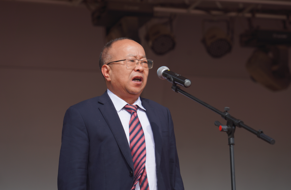 校長(zhǎng)曹利強(qiáng)致開(kāi)幕詞。他指出,我校始終踐行“健康第一”的教育理念,大力倡導(dǎo)“運(yùn)動(dòng)改變?nèi)松?,體育成就未來(lái)”的價(jià)值追求,持續(xù)優(yōu)化體育育人環(huán)境、創(chuàng)新體育活動(dòng)形式、提升體育課程質(zhì)量,努力為師生全面發(fā)展提供堅(jiān)實(shí)保障。本屆運(yùn)動(dòng)會(huì)的舉辦,不僅是一場(chǎng)精彩的體育賽事,更是對(duì)我校素質(zhì)教育成果、師生精神面貌的一次全面展示。期待全體師生在學(xué)業(yè)與體育的賽道上都能不斷突破自我、追求卓越,發(fā)揚(yáng)勇于挑戰(zhàn)、堅(jiān)韌不拔、奮勇?tīng)?zhēng)先、互助友愛(ài)的體育精神,賽出專業(yè)水平,賽出文明素養(yǎng),賽出青春活力,賽出集體榮譽(yù)。