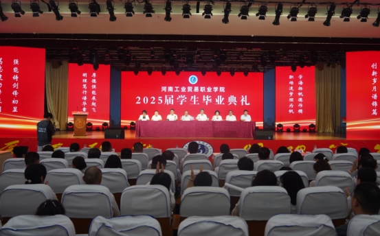 6月21日上午,河南工業(yè)貿(mào)易職業(yè)學(xué)院2025屆學(xué)生畢業(yè)典禮在龍湖校區(qū)學(xué)術(shù)報(bào)告廳舉行。全體校領(lǐng)導(dǎo)出席典禮。典禮由校黨委副書記柴瑞帥主持。