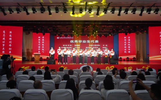 副校長(zhǎng)劉衛(wèi)紅宣讀表彰文件,與會(huì)校領(lǐng)導(dǎo)為獲獎(jiǎng)畢業(yè)生頒獎(jiǎng),畢業(yè)生代表李佳靜發(fā)言。