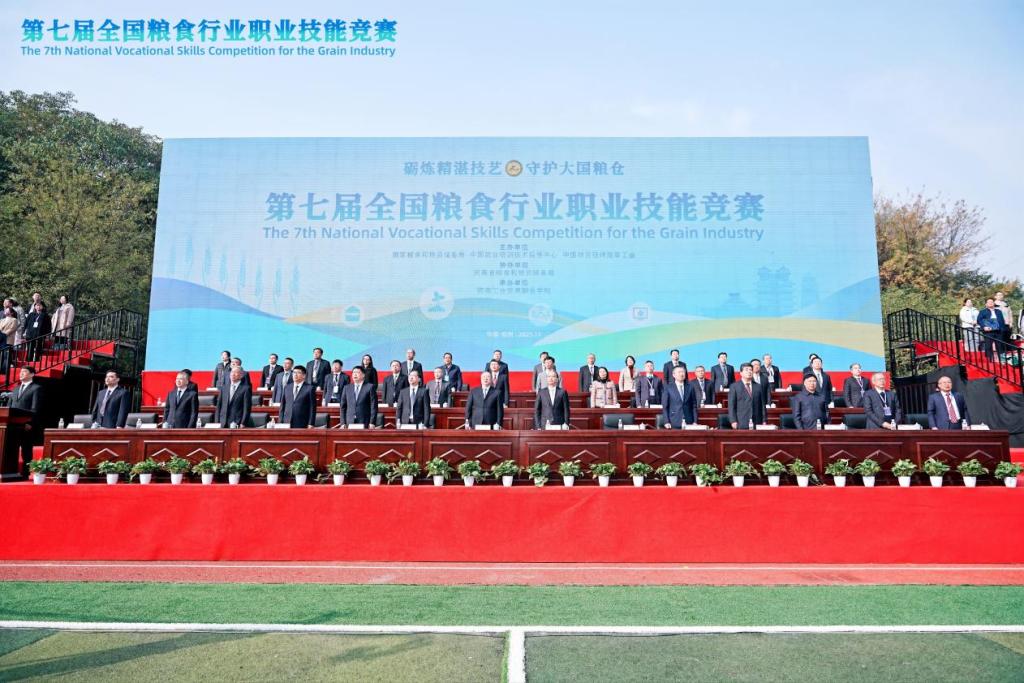 11月4日上午9時,我校承辦的第七屆全國糧食行業職業技能競賽在龍湖校區隆重開幕。國家發展改革委黨組成員,國家糧食和物資儲備局黨組書記、局長劉煥鑫出席開幕式并講話;河南省副省長李酌,中華全國總工會書記處書記、黨組成員張新武出席開幕式并致辭。國家糧食和物資儲備局總工程師滕增泰,國家糧食和物資儲備局相關司局單位、河南省糧食和物資儲備局,各?。▍^、市)糧食和物資儲備局(糧食局)負責同志;中儲糧集團、中糧集團、中國供銷集團、中國中化有關負責同志;河南省教育廳、河南省總工會、河南省人力資源和社會保障廳和鄭州市等部門和單位負責同志出席開幕式。