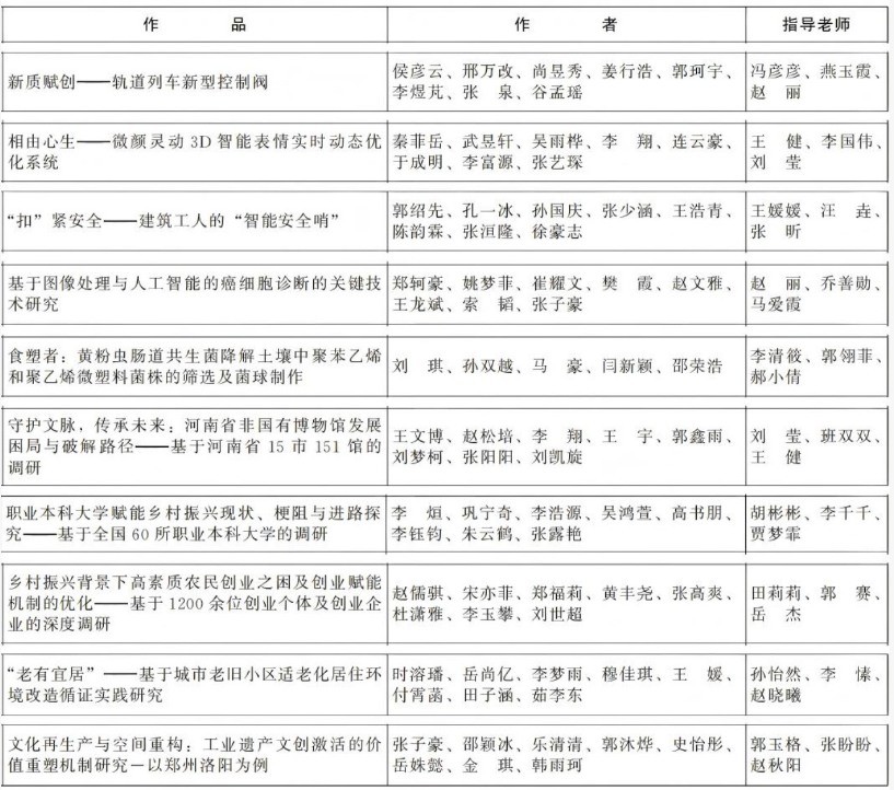 近日,第十七屆“挑戰杯”河南省大學生課外學術科技作品競賽獲獎名單揭曉。我校師生再創佳績,共斬獲特等獎1項、一等獎10項、二等獎3項、三等獎10項,獲獎數量與質量均實現歷史性突破,彰顯了我校在人才培養與科技創新領域的育人成效。