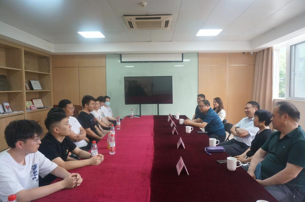 在杭州贏動教育科技有限公司會議室,劉合行一行與園區內及附近工作的校友代表們進行暢談,他們都來自2016、2017級電子商務專業,在杭州打拼了四、五年時間。劉合行非常關心他們在企業的發展成長,當得知多數學生已經是天貓店長、抖音店長時,感到由衷欣慰,并勉勵大家要勤勉工作、善于學習新技能,歡迎隨時回到母校,親身感受學校近幾年的發展變化,同時建議成立校友會杭州分會,依托校友會平臺為一屆屆的畢業生提供更多就業機會和發展空間,助力幫扶、凝聚學緣、增進校友情誼。