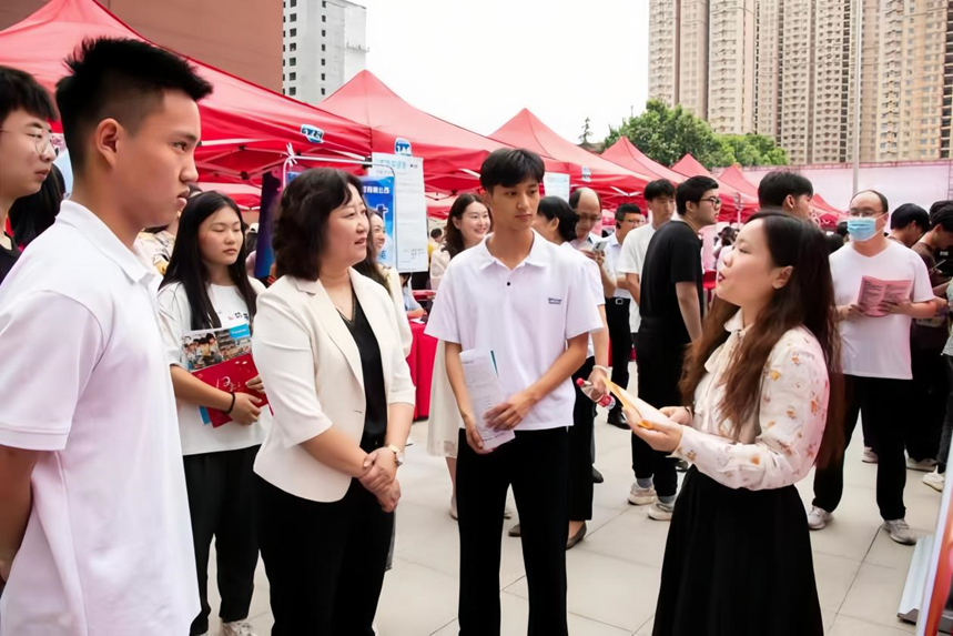 為深入學(xué)習(xí)貫徹黨的二十大精神,落實(shí)黨中央、國務(wù)院和河南省委省政府、省教育廳關(guān)于做好高校畢業(yè)生就業(yè)工作重要決策部署,聚焦畢業(yè)季,搶抓就業(yè)工作關(guān)鍵期,6月11日,我校在龍湖校區(qū)紅旗廣場(chǎng)隆重舉辦“百日沖刺促就業(yè)、踔厲奮發(fā)建新功”為主題的2023年校園雙選會(huì)。270家用人單位攜12000個(gè)實(shí)習(xí)就業(yè)崗位齊聚雙選會(huì)現(xiàn)場(chǎng)招賢納才。我校8200名學(xué)生參加了本次雙選會(huì),現(xiàn)場(chǎng)共投放簡歷9300余份,達(dá)成就業(yè)意向6500余人次。