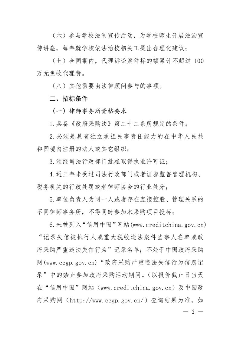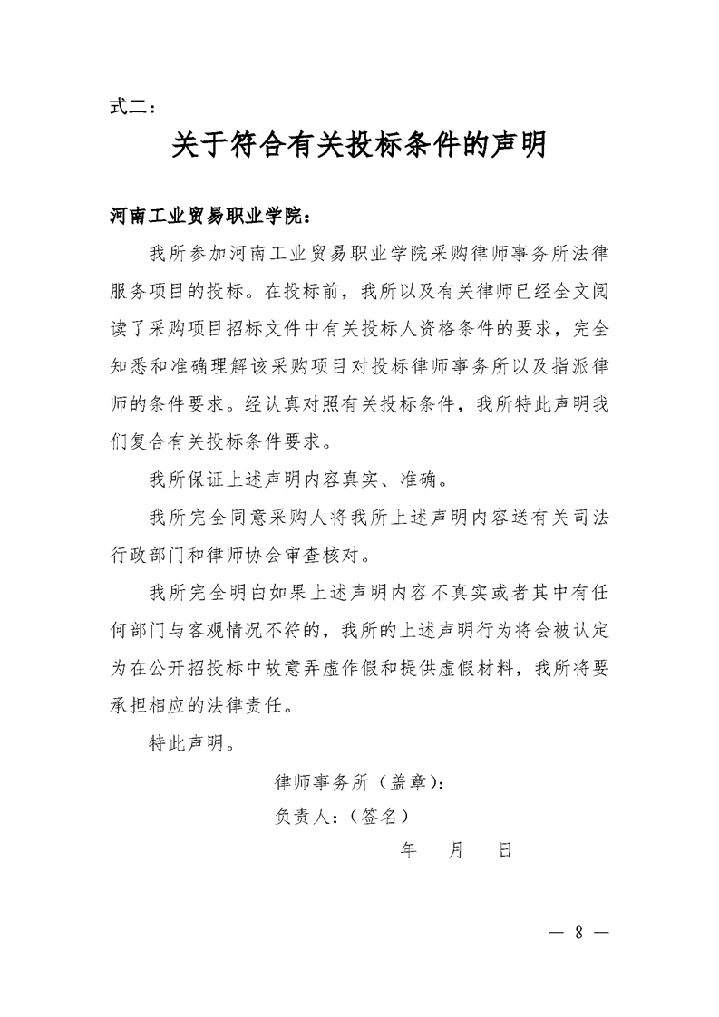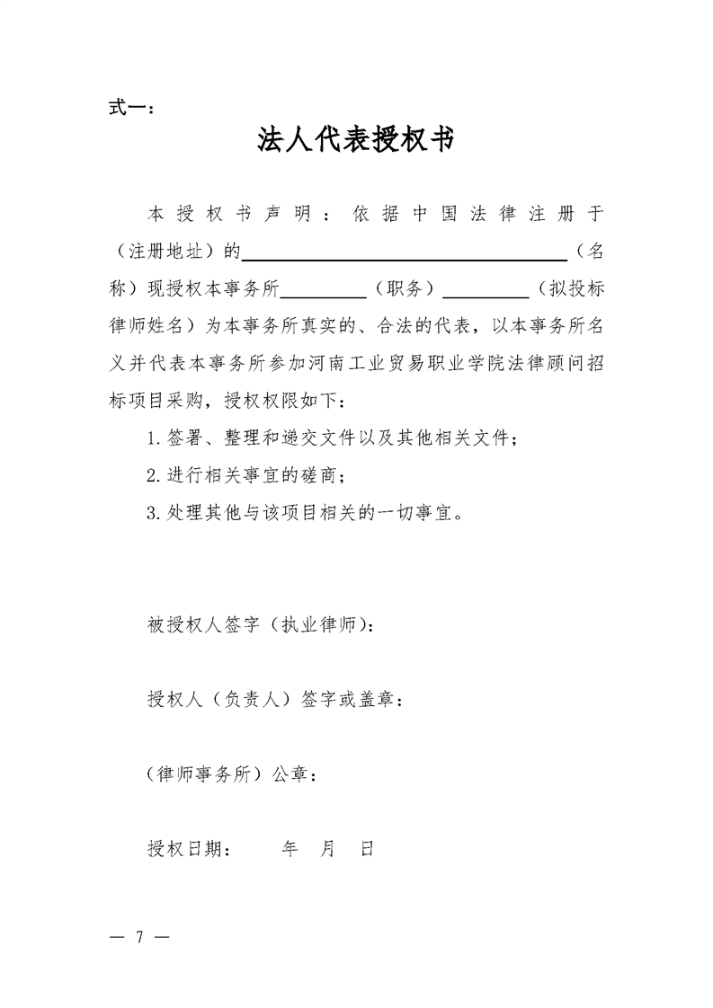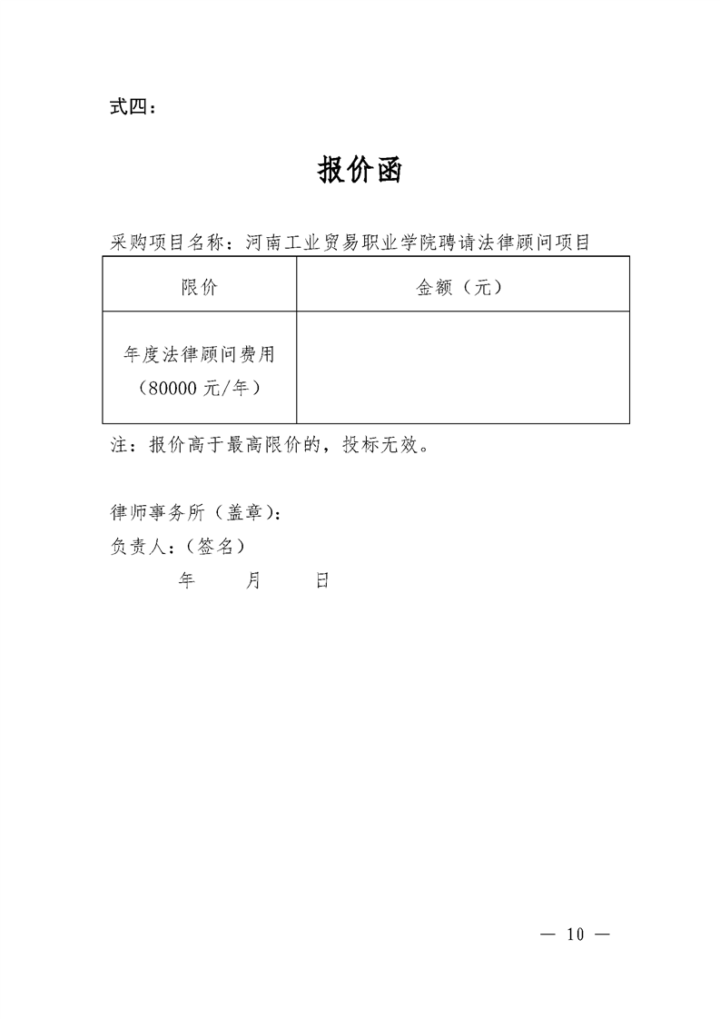 河南工業貿易職業學院關于聘請法律顧問的招標公告