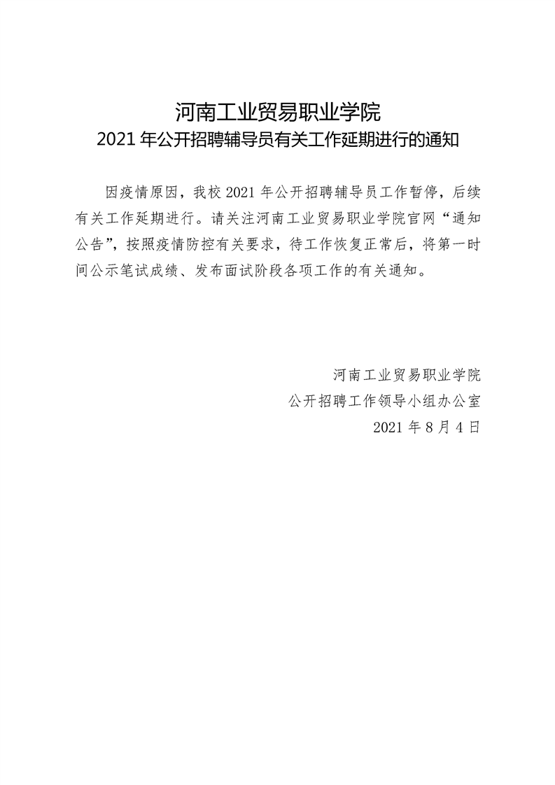 2021年公開招聘輔導員有關工作延期進行的通知