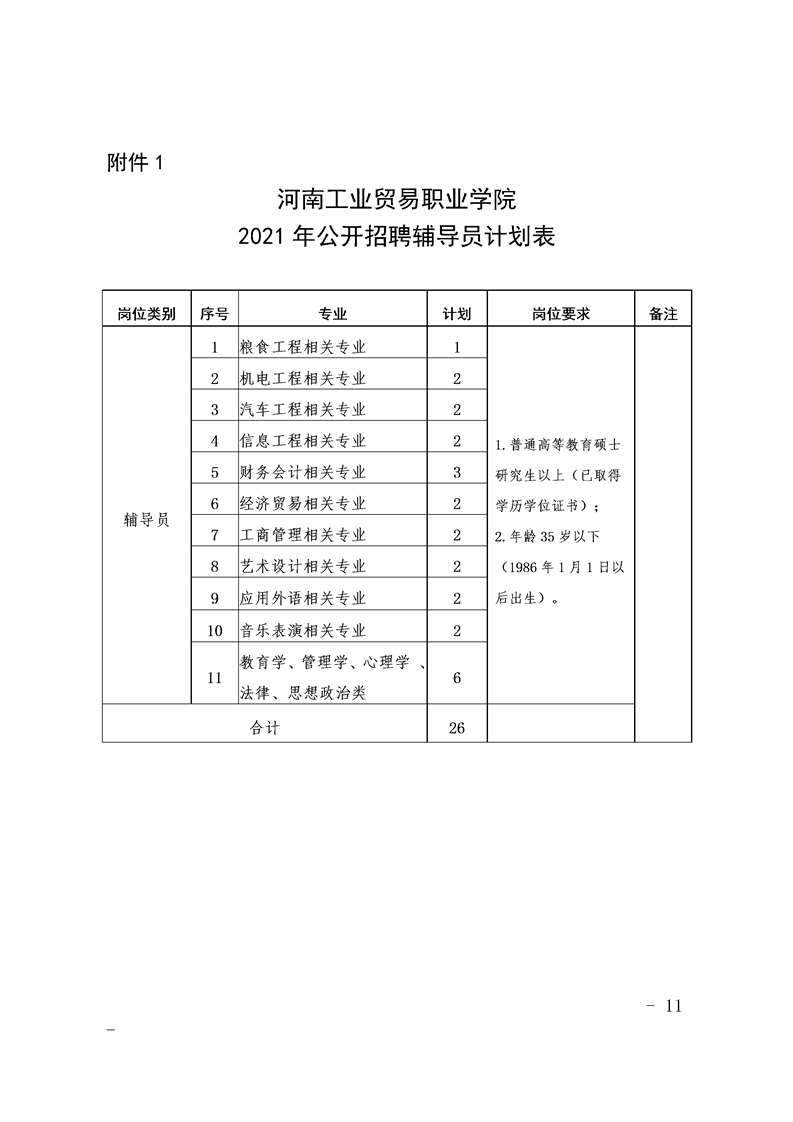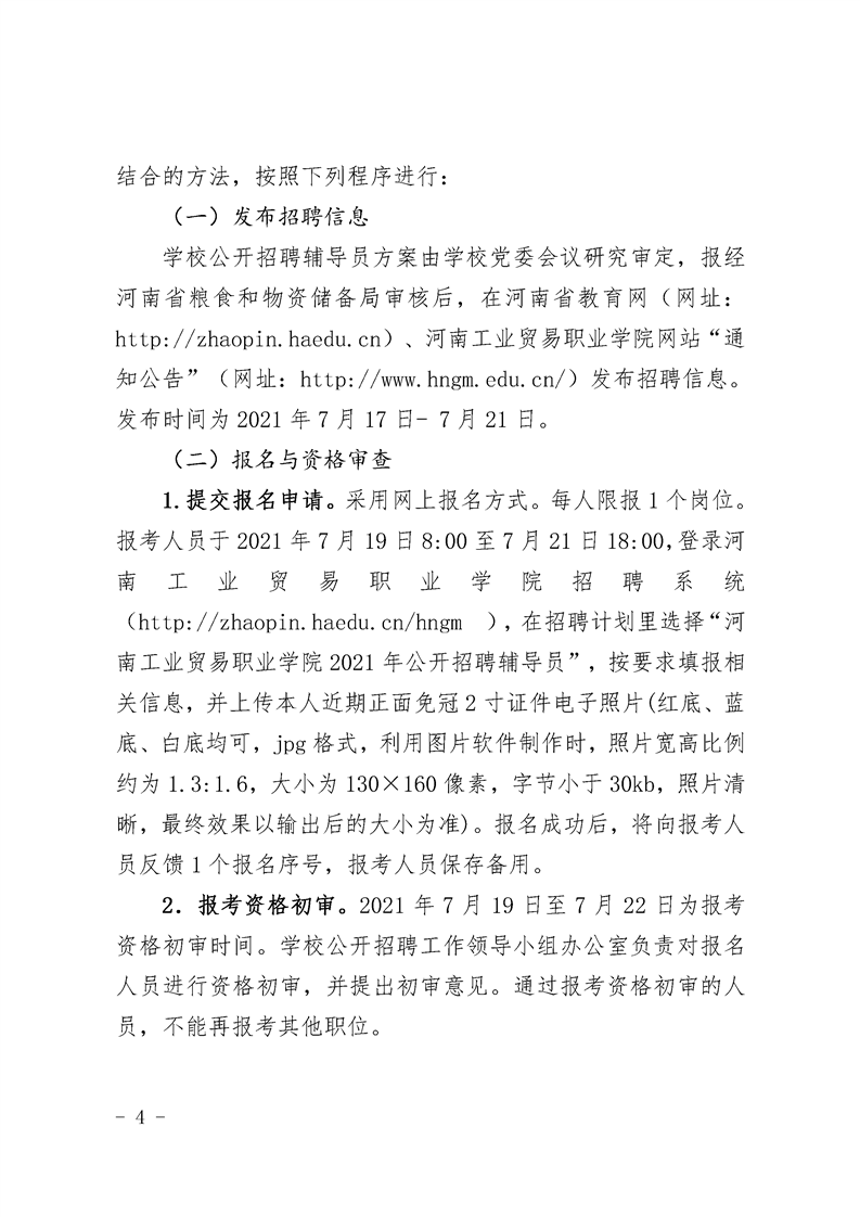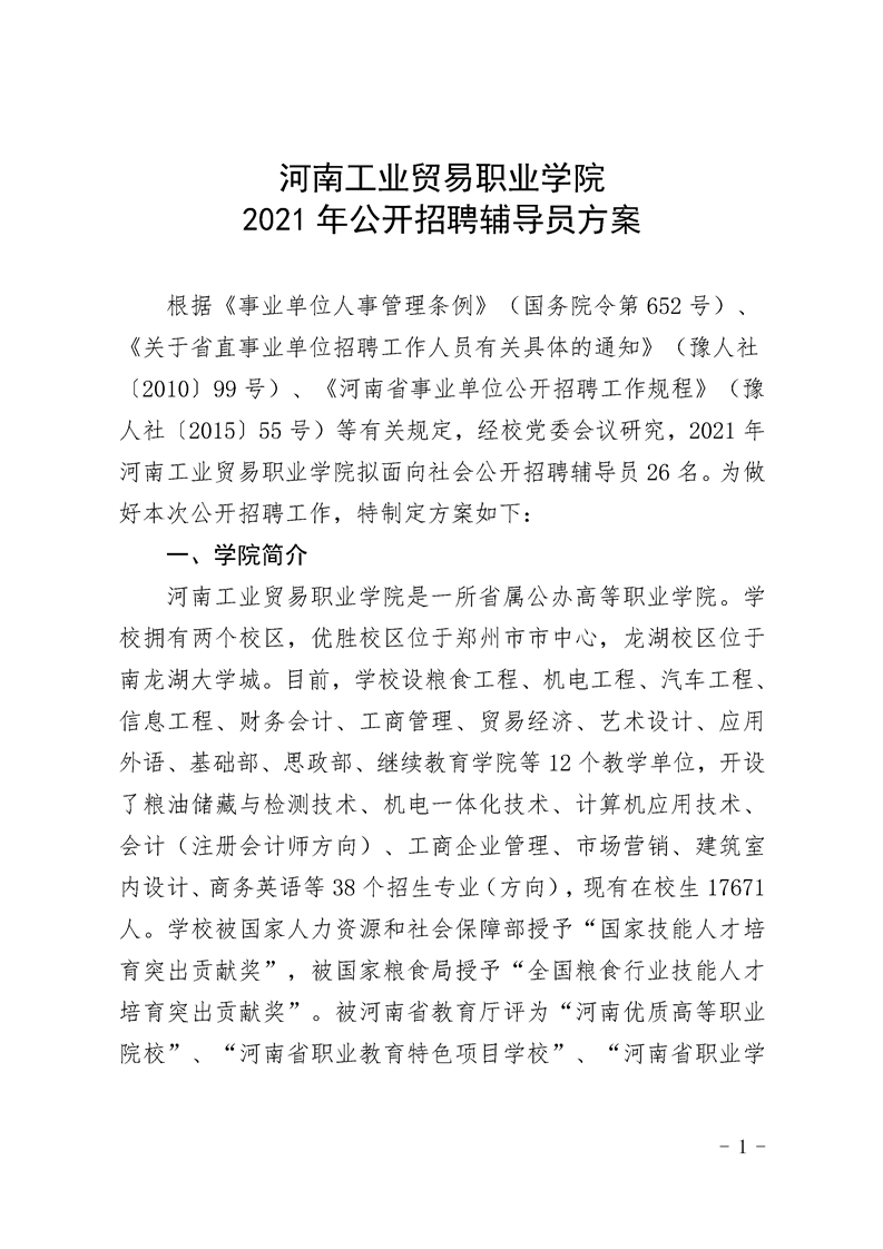 河南工業(yè)貿(mào)易職業(yè)學(xué)院2021年公開招聘輔導(dǎo)員方案