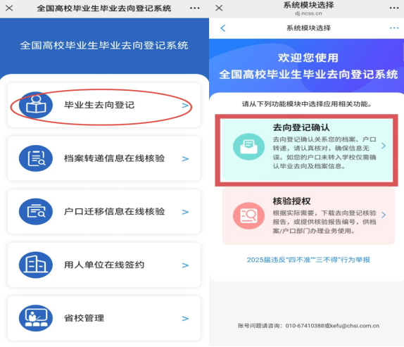 2023年起,國家取消就業報到證,建立畢業生畢業去向登記制度,并把畢業去向登記納入畢業生辦理離校手續的其中一個必要環節。畢業生(含結業生)在離校前須及時登錄全國高校畢業生畢業去向登記系統進行去向登記確認,具體操作方法如下: