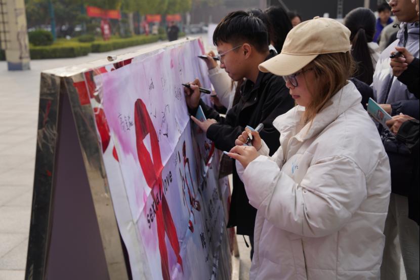 活動中,醫務人員利用展板,深入淺出的向同學們講解了“什么是艾滋病以及艾滋病的主要傳播途徑”,特別講解了“艾滋病的預防”,引導同學們自尊自愛,珍惜健康。活動現場,同學們紛紛參與背景墻簽名打卡,進行響應和支持。活動還專門設置了健康咨詢中心,解答同學們的疑問。
