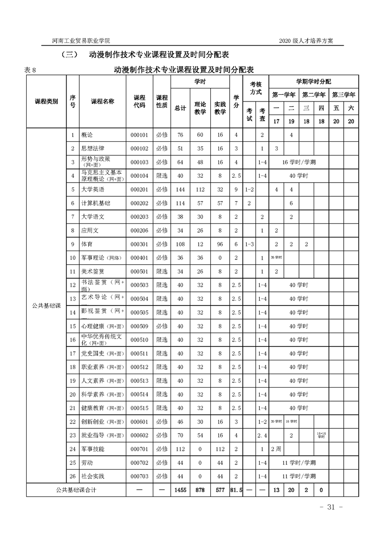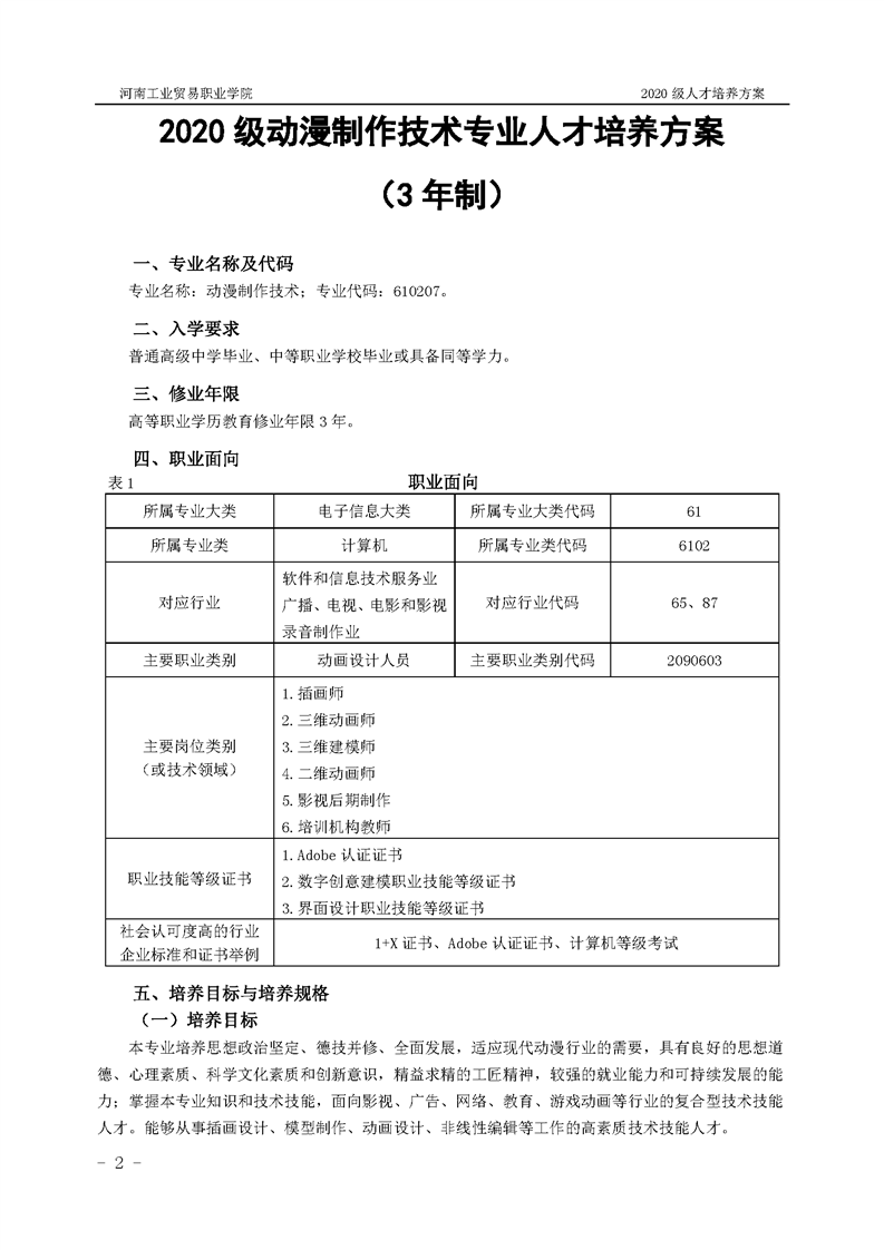 48.2020級(jí)動(dòng)漫制作技術(shù)專業(yè)(3年制)人才培養(yǎng)方案