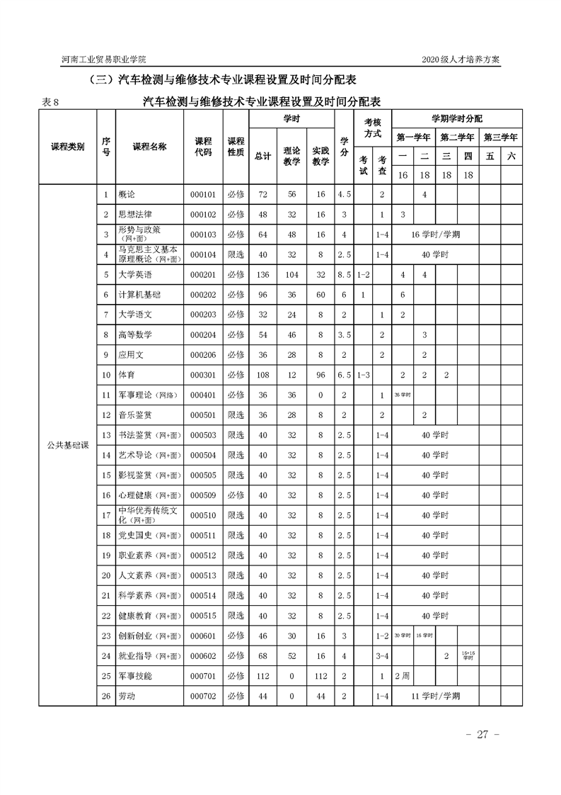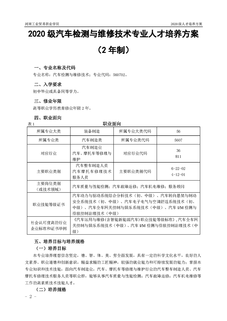 16.2020級(jí)汽車(chē)檢測(cè)與維修技術(shù)專(zhuān)業(yè)(2年制)人才培養(yǎng)方案