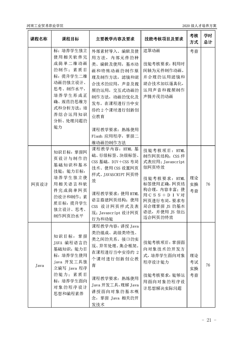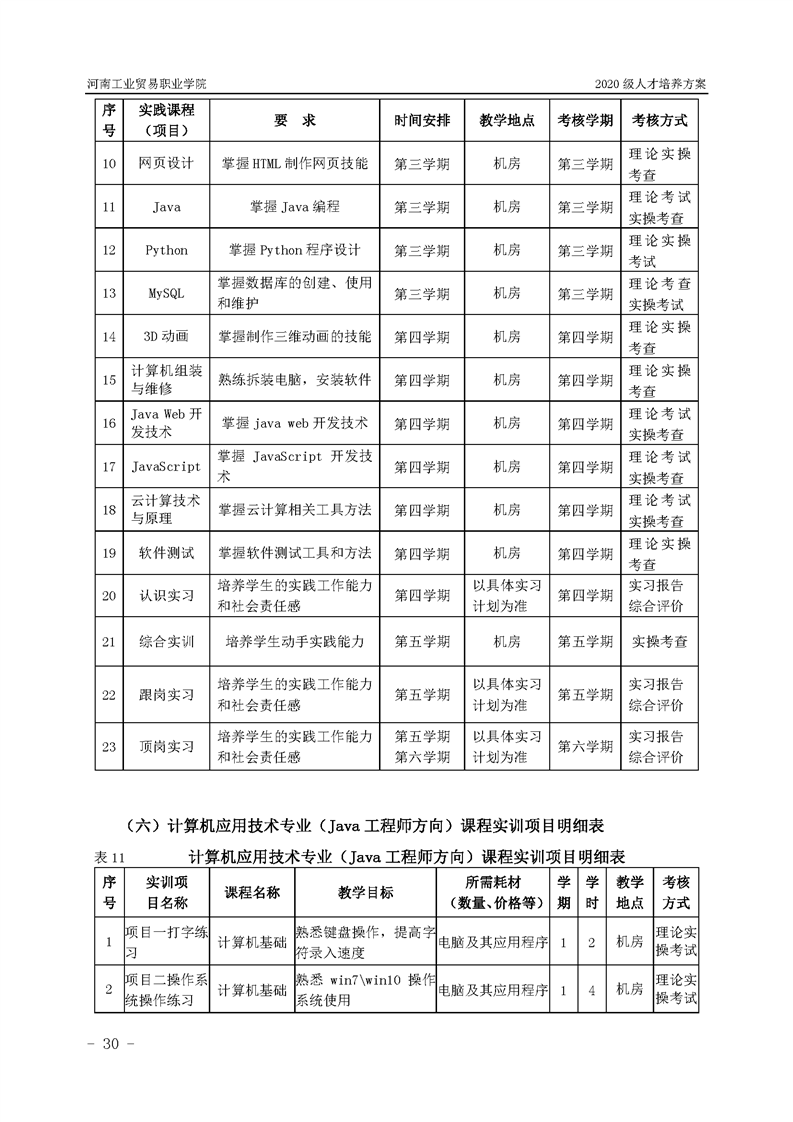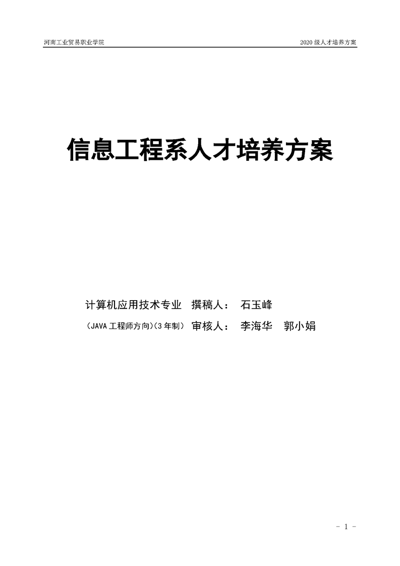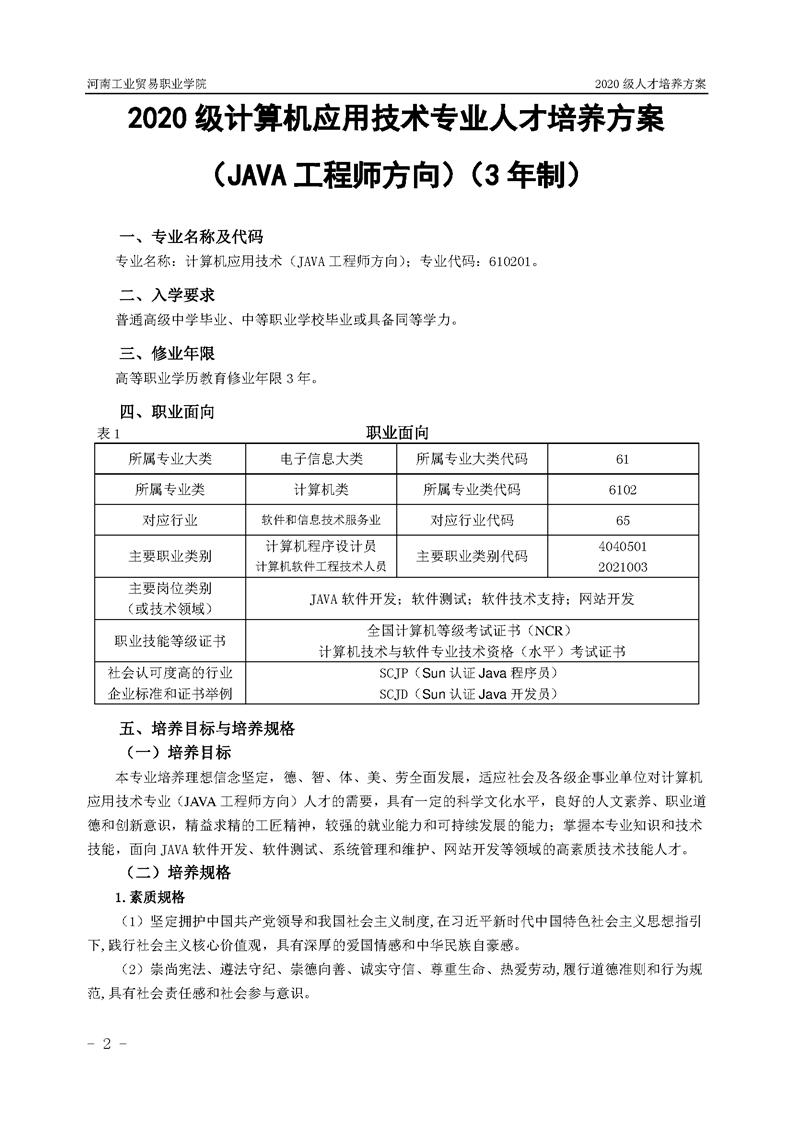 17.2020級(jí)計(jì)算機(jī)應(yīng)用技術(shù)專業(yè)(JAVA工程師方向)(3年制)人才培養(yǎng)方案