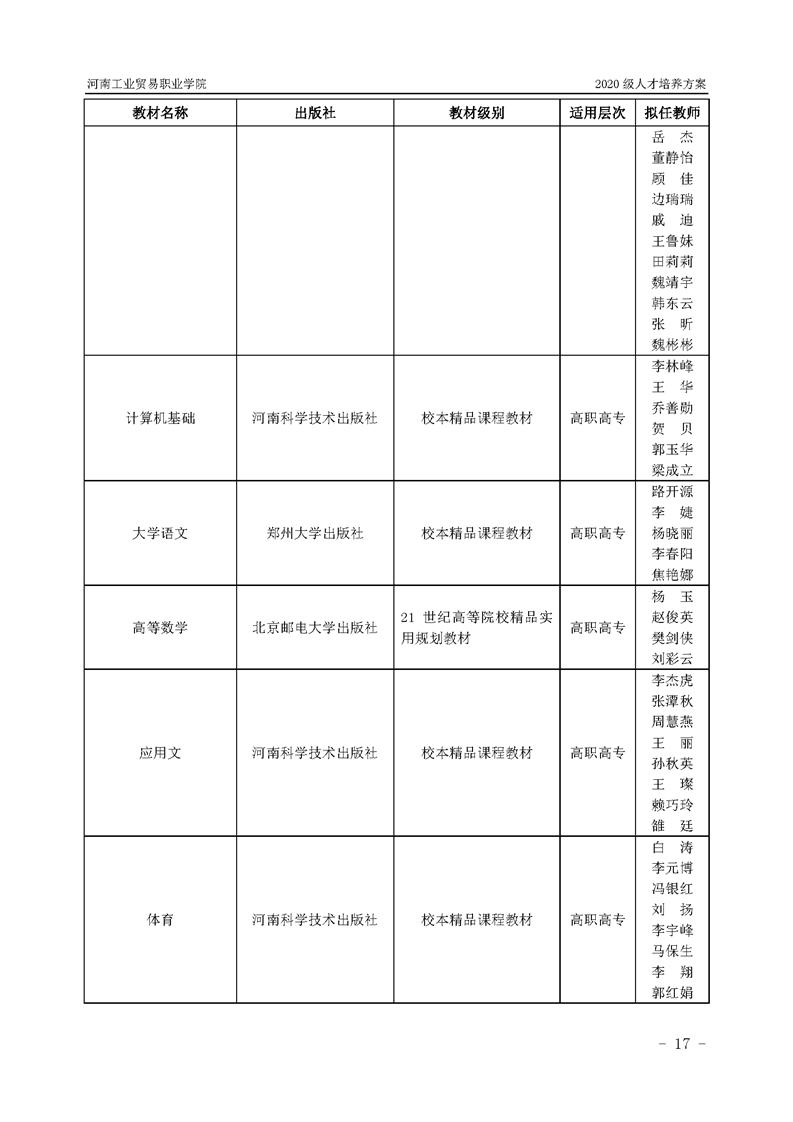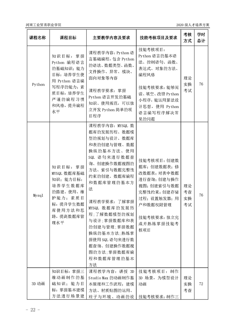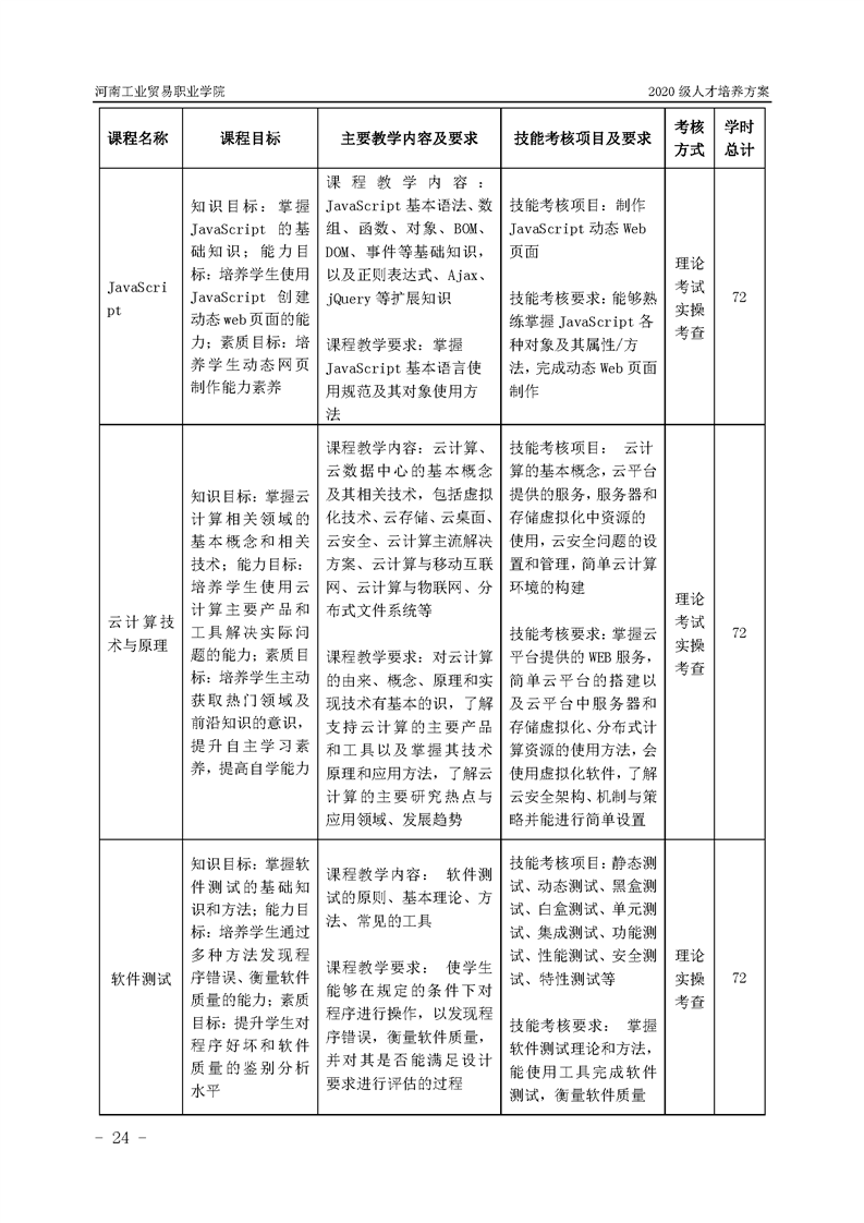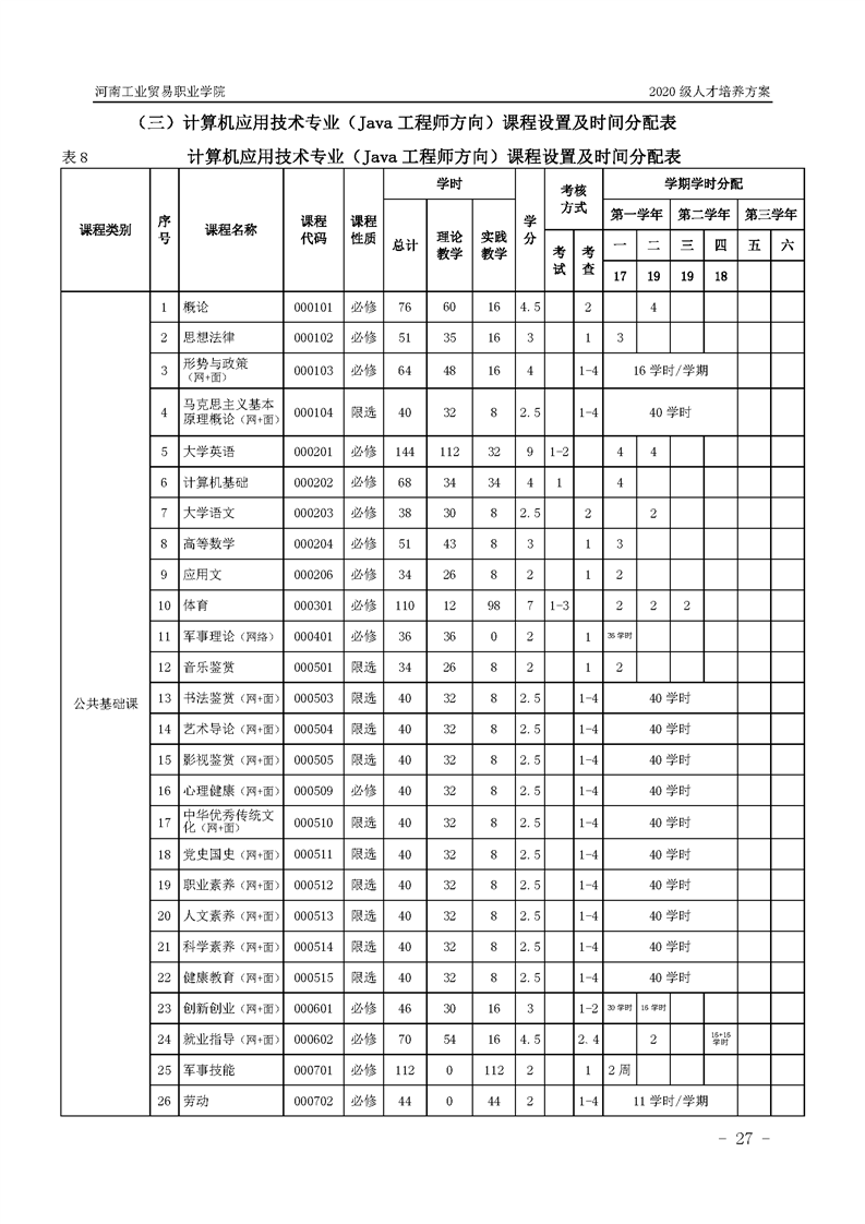 17.2020級(jí)計(jì)算機(jī)應(yīng)用技術(shù)專業(yè)(JAVA工程師方向)(3年制)人才培養(yǎng)方案