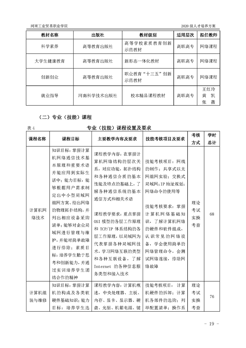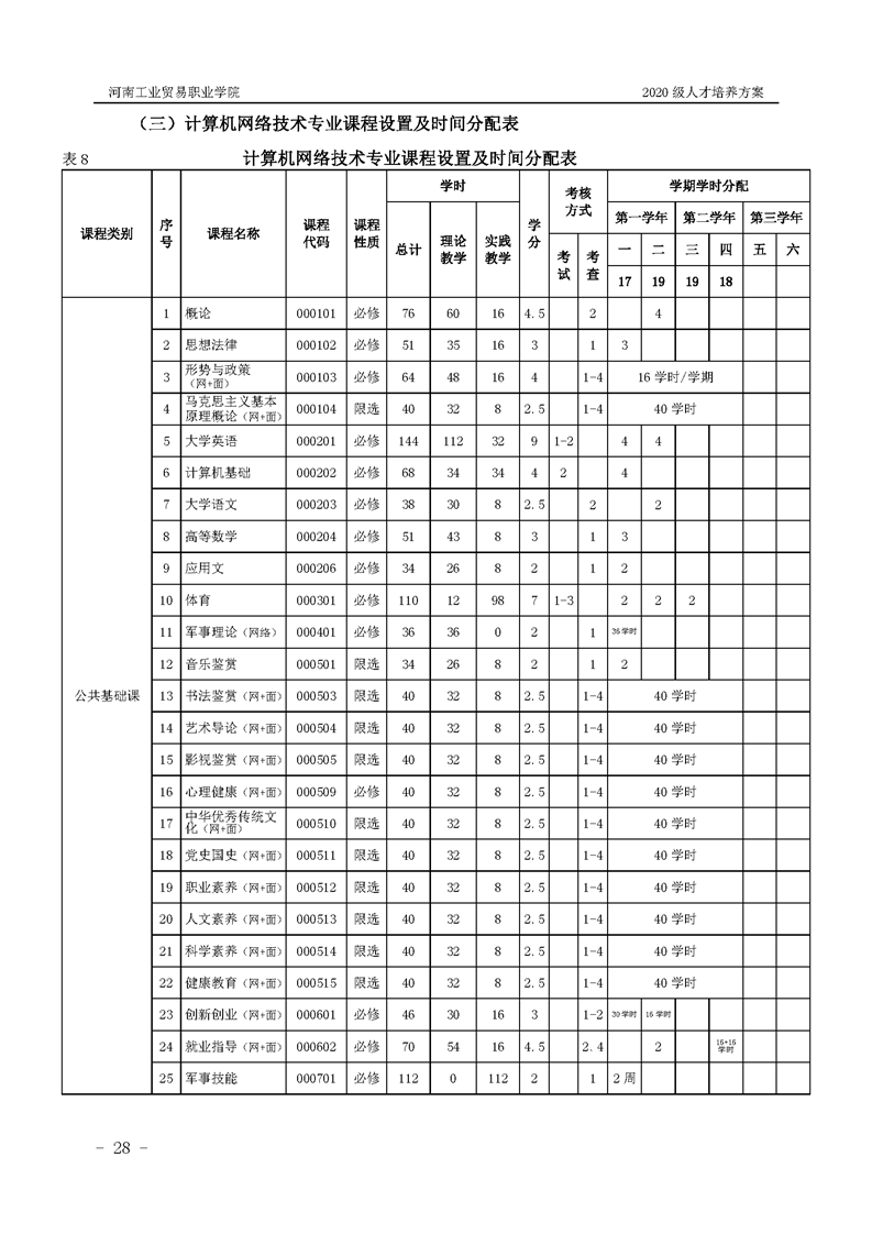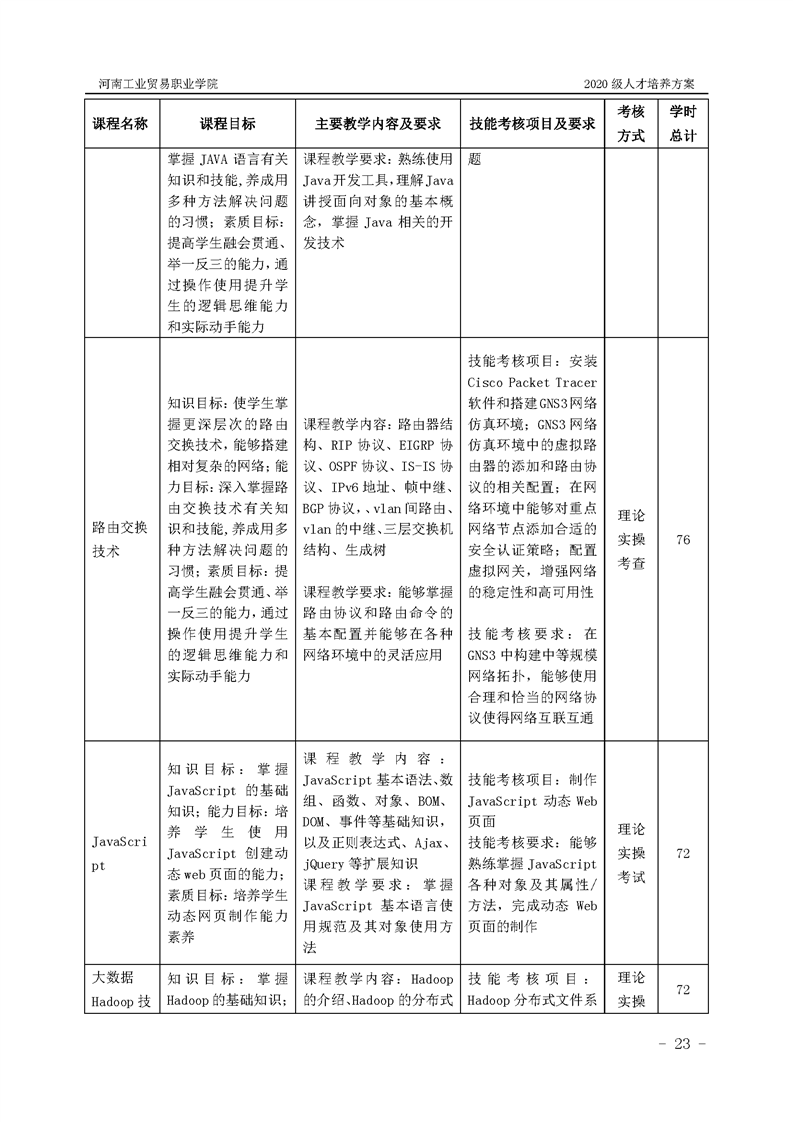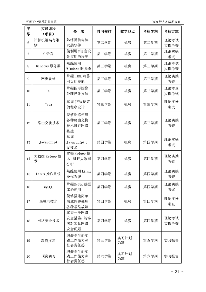 18.2020級計算機網絡技術專業(3年制)人才培養方案